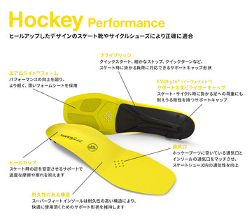 Hockey Performanceの形状は、ヒールアップしたデザインのスケート靴やサイクルシューズにより正確に適合し、効率的なパワーを生みだします。 バイオメカニクスに基づいた設計によるサポートで足を安定させ、スケーティングやサイクルスポーツでのペダリングのパワーコントロールを改善。よりよい履き心地を実感できます。